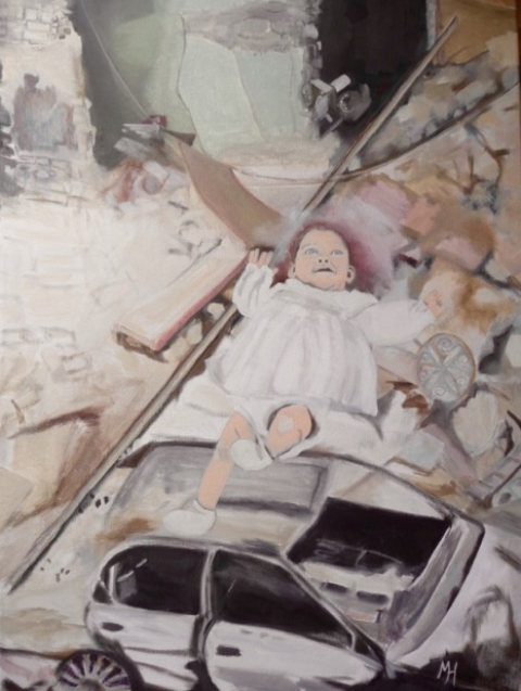 Ik had al schilderend in gedachten alle oorlogen en onrust in de wereld: klein en groot.