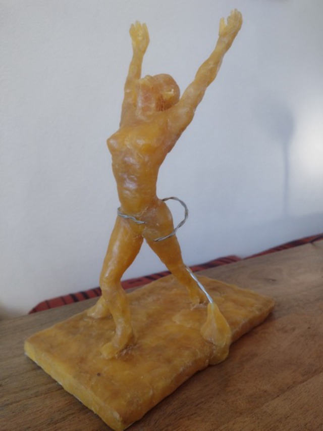De vorm van mijn beeld geeft een vrije vlucht aan, waarbij de kleur blauw staat voor vertrouwen en veiligheid,