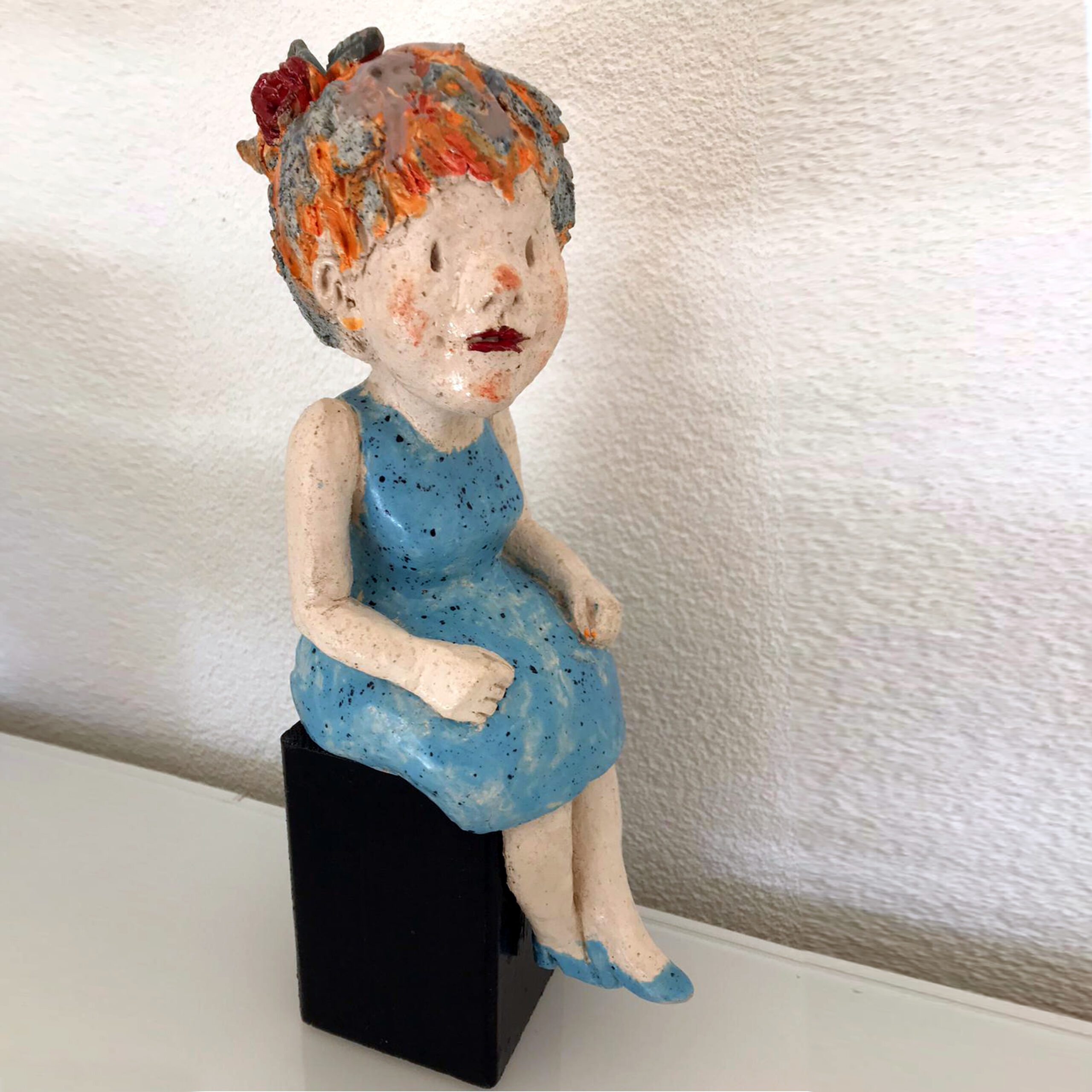 Na aanvankelijk stofschilderijen en beelden gemaakt te hebben heeft ze zich de laatste tijd voornamelijk gericht op het boetseren in klei.
